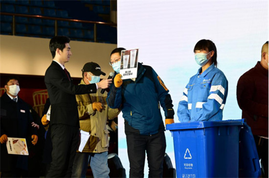 启动仪式在一场热闹的竞技游戏中开场。100位市民代表手持各类容易分错的生活垃圾示意牌,逐一走上舞台,现场挑战垃圾分类。来自社区的垃圾分类指导员当场检验分类结果,并指导校对分拣。持续跳动的倒计时,生动地说明垃圾分类不到位和错误分拣所造成的巨额成本和资源浪费,也让所有观众更加直观地感受到垃圾分类的重要性。