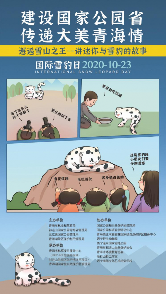 近日,在省林草局党组的领导下,由青海省林草局、祁连山国家公园青海省管理局、三江源国家公园管理局和青海湖景区保护利用管理局联合主办,由青海省林草项目服务中心(UNDP-GEF加强青海湖-祁连山景观区保护地体系项目)承办的“国际雪豹日”宣传活动,于2020年10月24-27日在西宁举行。