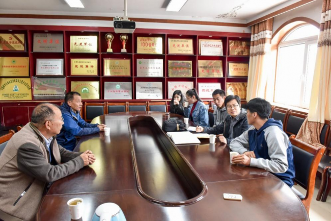 25日13:00,工作组抵达北山林场。座谈会上,北山林场赵昌宏场长等人简要介绍了北山林场的地理位置、气候条件、行政编制和业务范围等情况。随后,西高所负责北山林场野生动物资源调查并拍摄到野生雪豹的科研人员王东讲述了红外相机捕获野生雪豹影像的过程。最后,动物园齐新章副园长就动物园及野生动物救护中心多年来雪豹饲养繁育、收容救护和宣传推广方面的工作进行了介绍。