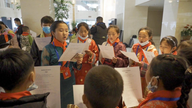刚察县的少先队员代表表达了对雪豹的喜爱以及保护的决心