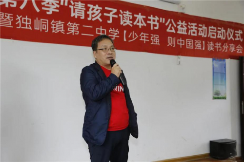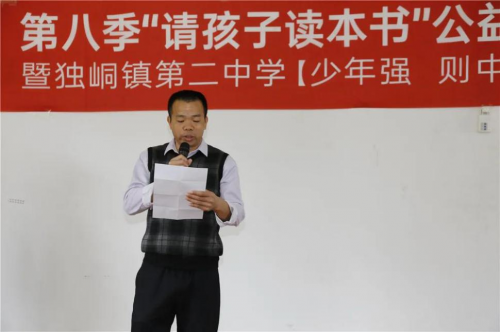 独峒镇第二中学校长吴益川在致辞中说道:“生活家地板和读者杂志社的公益活动不止是捐助物质,更是对孩子进行精神上的鼓励、支持和鞭策,这样的精神滋养正是独峒镇的孩子所需要的,捐书助学惠泽千秋,并请爱心公益人士放心,一定会让读书这项公益活动在第二中学发挥最大的作用”。