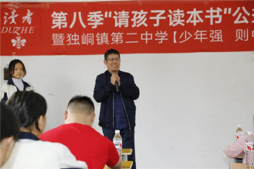 读者杂志社副社长潘萍表示读者杂志社一直以来都非常关注青少年的成长,不仅有大家熟知的《读者》,还有专门为中学生打造的《读者》(校园版)刊物,并通过三个故事生动形象地阐述了“少年强则中国强”的意义,她认为中国需要有更多散发着理性光芒的人,希望在座的学子能真正地做好阅读、思考,未来成为散发理性光芒的人,为我们国家的建设和发展起到巨大的推动作用。