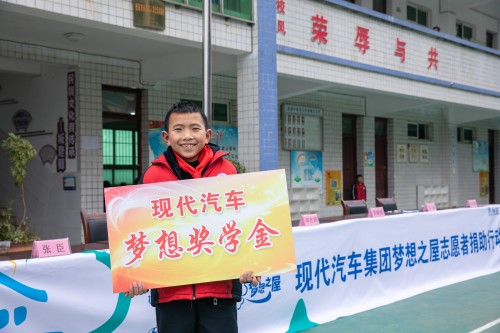 此外,为了更好帮助孩子们完成自己的梦想,现代汽车“梦想之屋”公益活动自2019年起还增设了“梦想奖学金”,每一期从受助学校中选择一名品学兼优的孩子,资助其从初中到大学的学业生活。此次获得奖学金的同学有一个梦想,他说:“我想把充满希望的家乡用画笔画下来,让更多人看到她,喜欢她,愿意来建设她…”