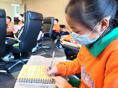 图 3 时事评论课上孩子认真记笔记