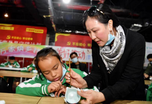 内容丰富有趣的广彩课为来自毕节的孩子与“星星的孩子”搭建了相互陪伴、分享美好、共同成长的桥梁。在课上,孩子们结伴完成广彩作品,在作品中一同表达着自己对美好的想象、对生活的向往。通过美术教育促进残健共融,亦是万家践行“共创美好生活”责任使命的举措之一。