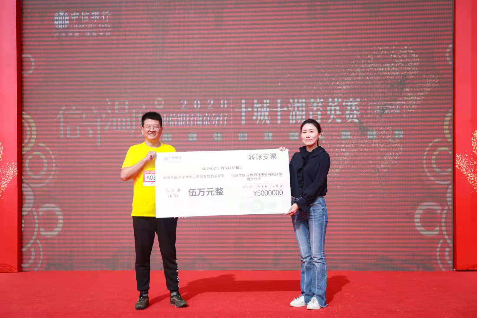 整场活动特别让人动容的还有其欢乐下的公益心。作为此次菁英赛的重头戏,慈善捐赠环节将活动推向高潮。践行社会责任、传递社会正能量,中信银行南京分行倡议现场参赛选手捐出自己的步数,由该行将步数兑现成善款。中信银行南京分行行长助理徐震代表该行向南京林业大学教育基金会捐赠人民币5万元。