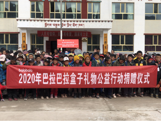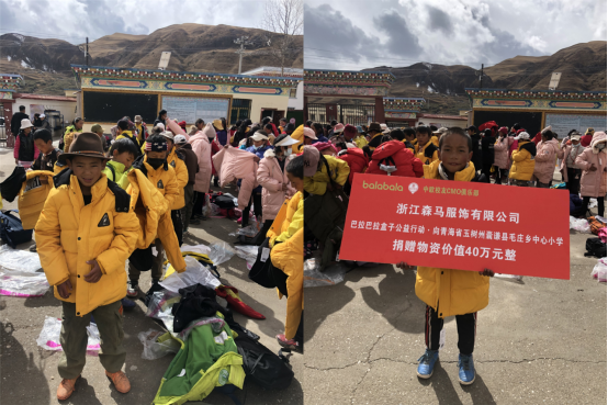 2020年11月10日,巴拉巴拉携手中欧CMO俱乐部一同走进青海省玉树市囊谦县毛庄小学,共同举办巴拉巴拉“盒子礼物”公益行捐赠仪式。巴拉巴拉为毛庄小学和阳光福利小学捐赠1000余件过冬服装,用爱传递温暖,帮助孩子们度过寒冷的冬季。